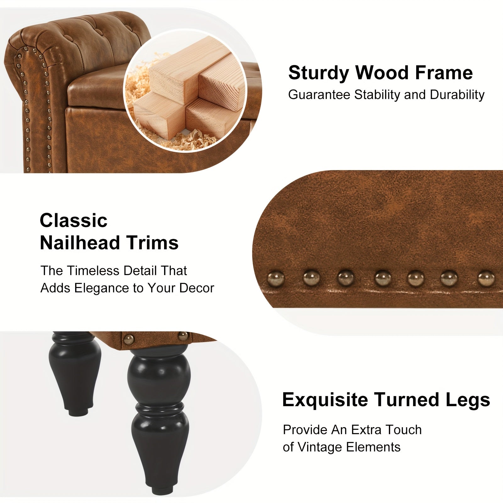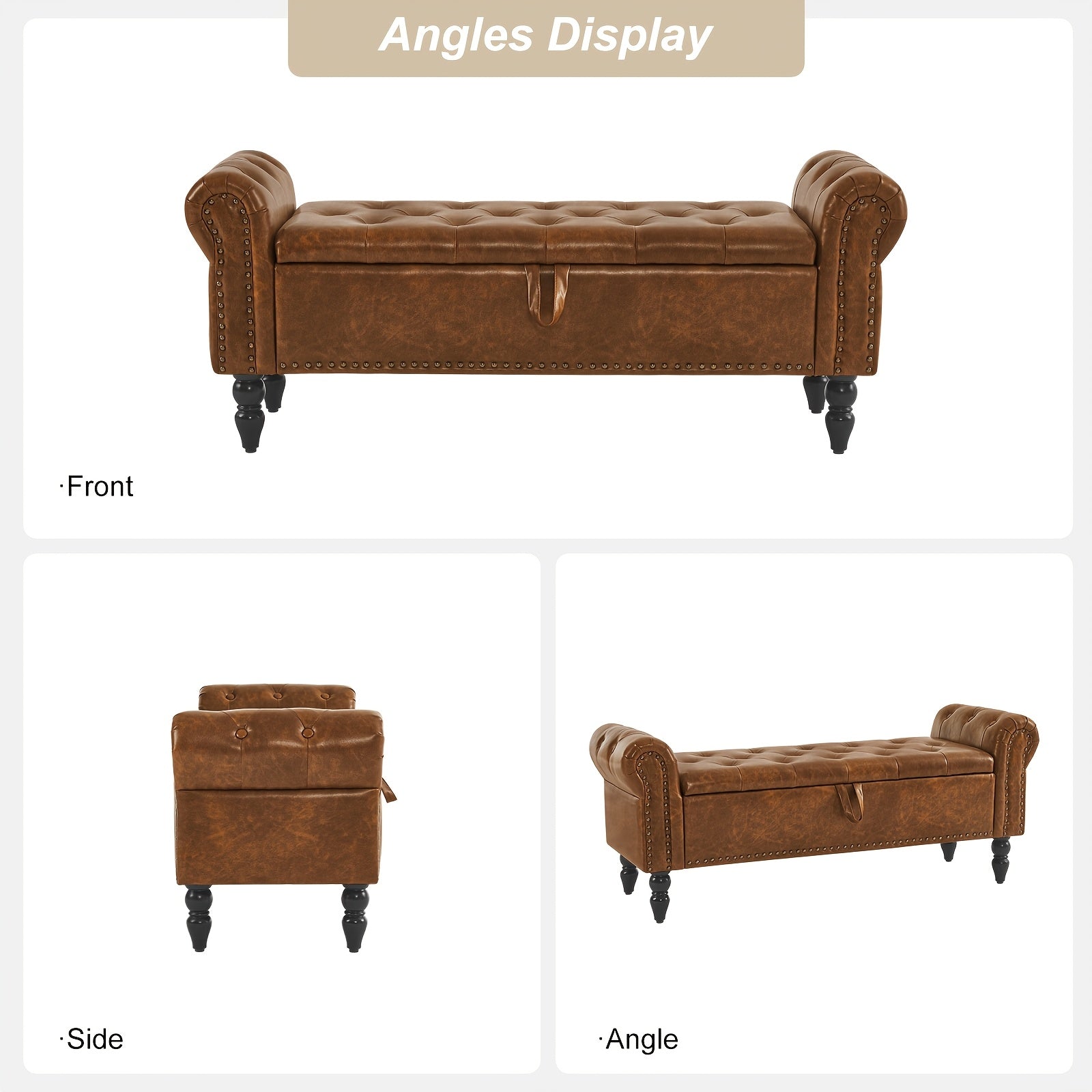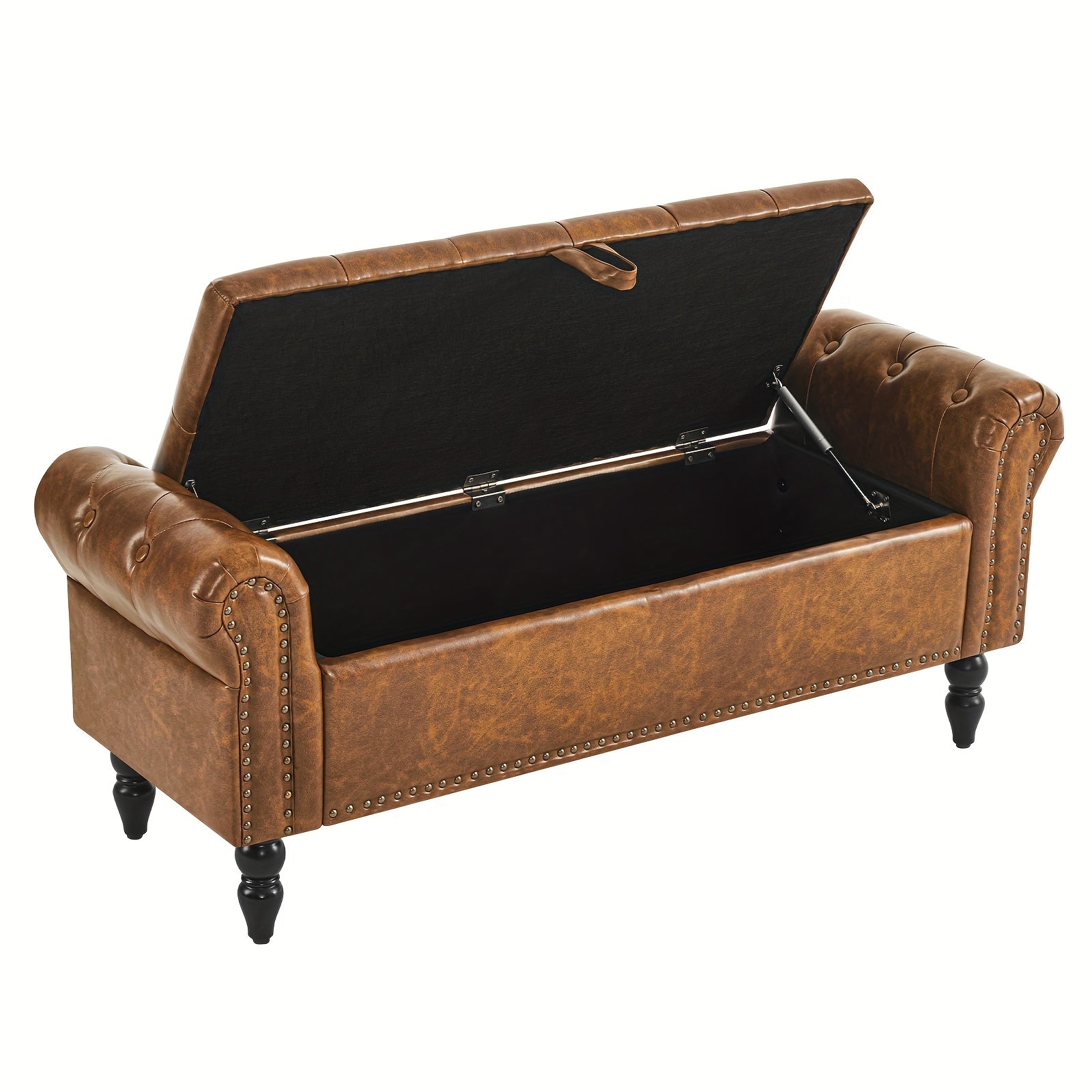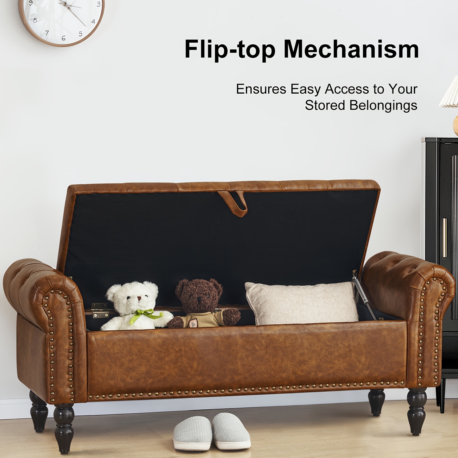 FURNIMART Luxury Mid-Century Modern Wooden Storage Bench with Roll-Up Arms - Large Capacity Flip-Top Design, Durable Recycled Wood, Easy Assembly for Bedroom, Living Room, Hallway