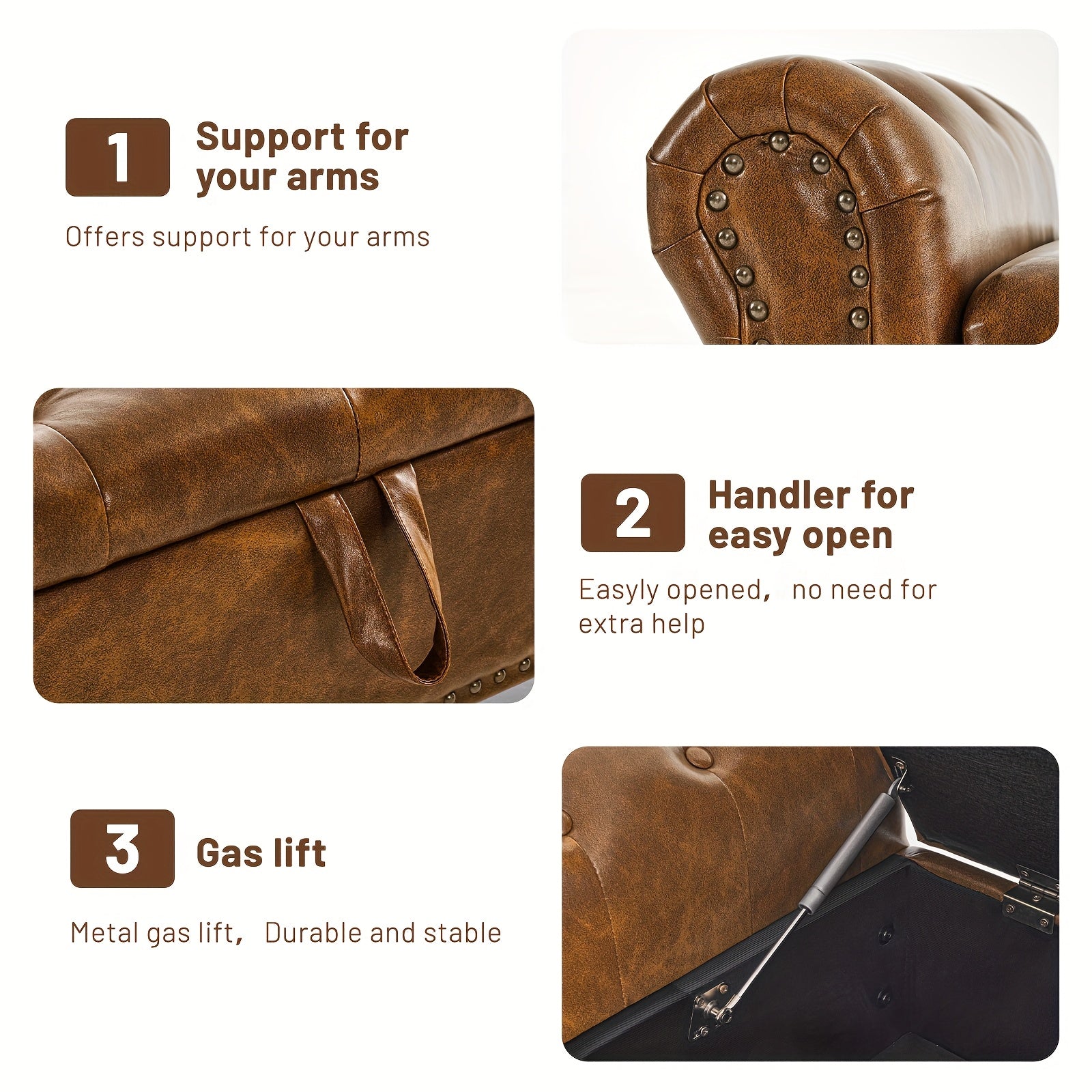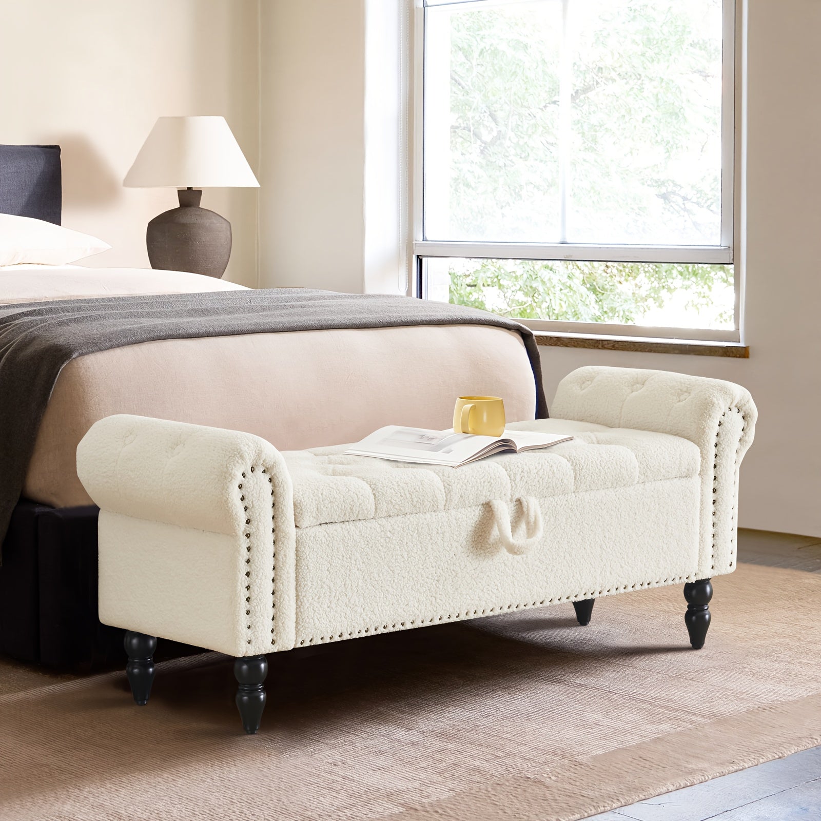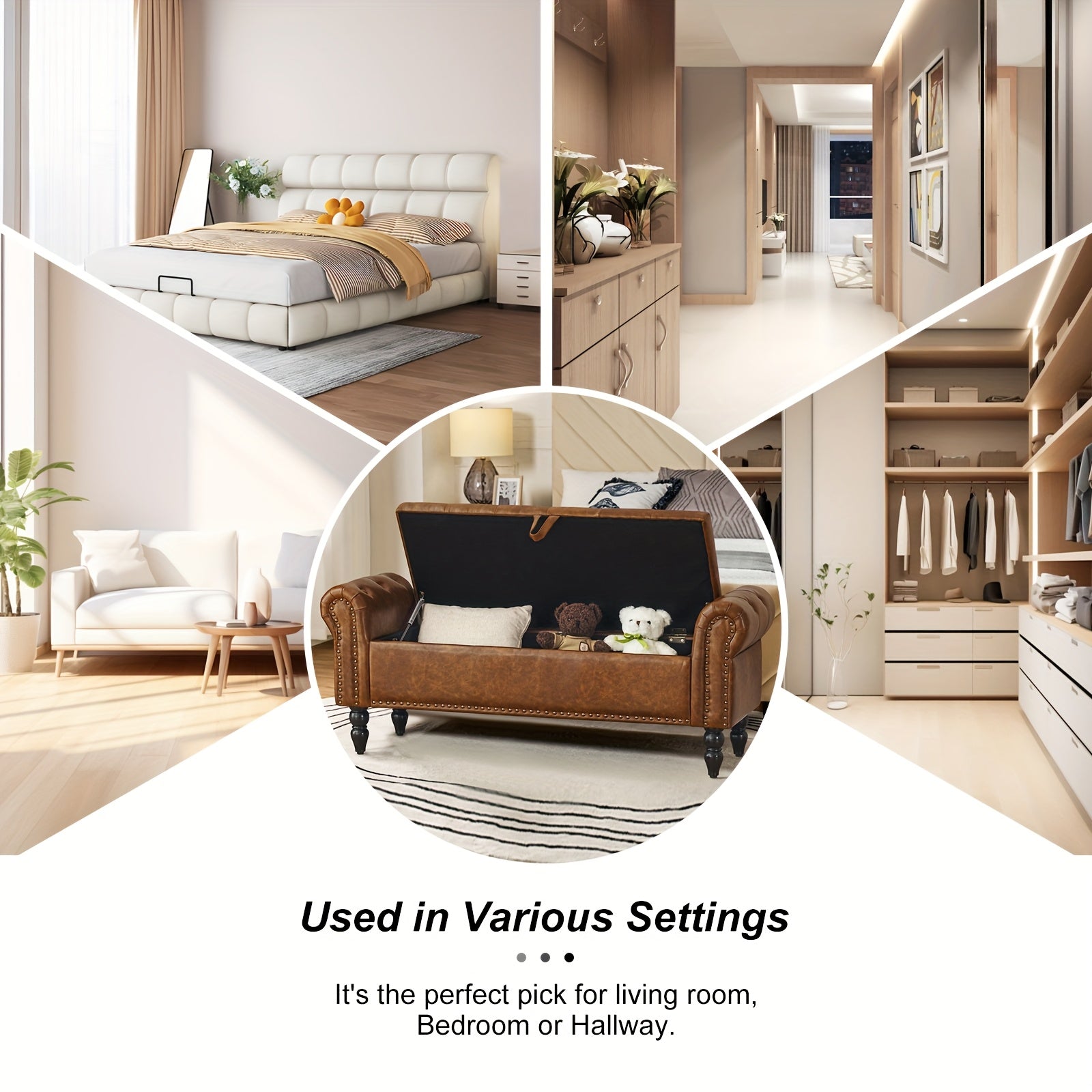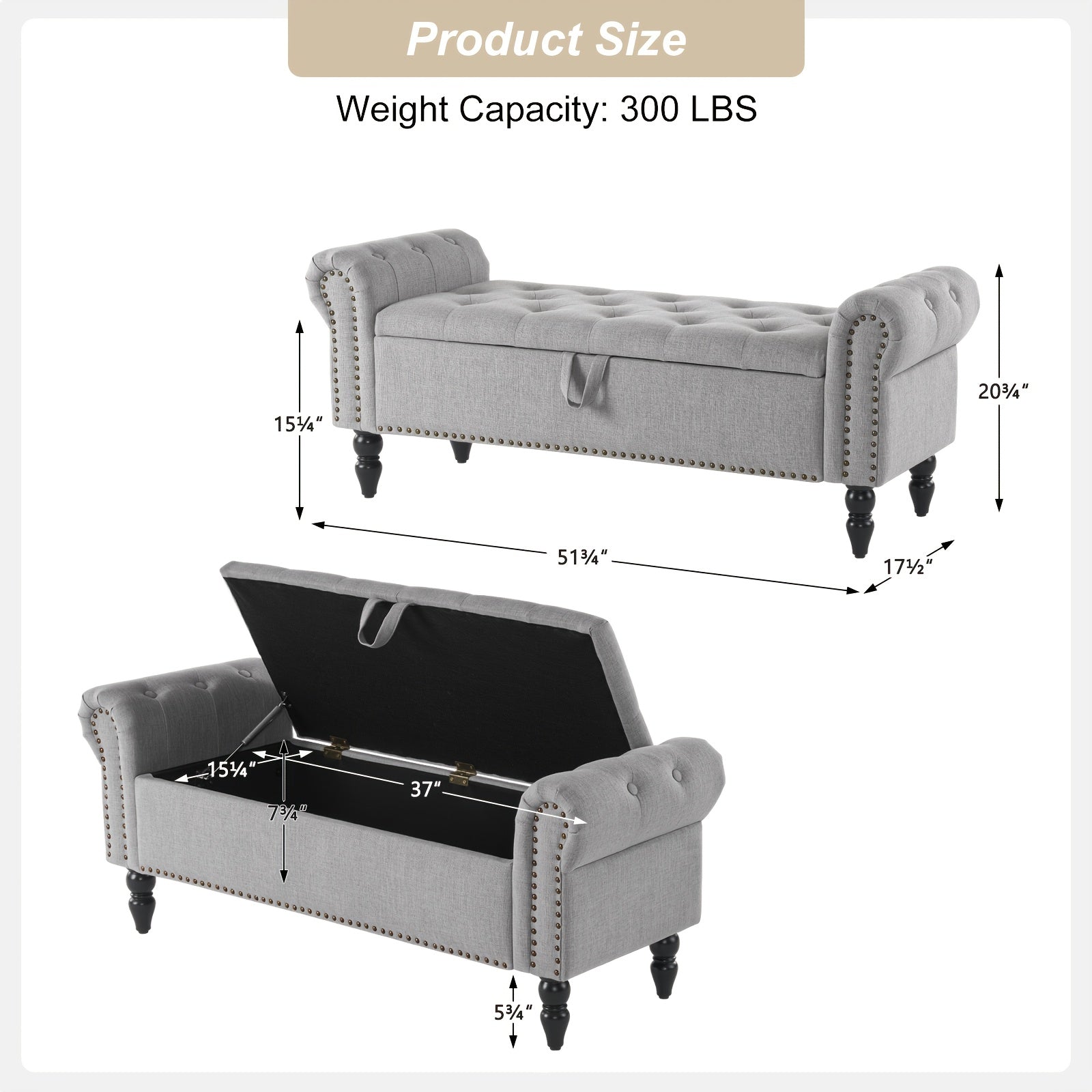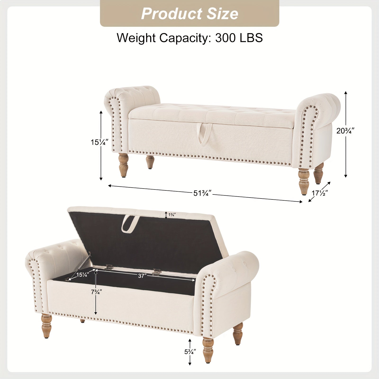 FURNIMART Luxury Mid-Century Modern Wooden Storage Bench with Roll-Up Arms - Large Capacity Flip-Top Design, Durable Recycled Wood, Easy Assembly for Bedroom, Living Room, Hallway