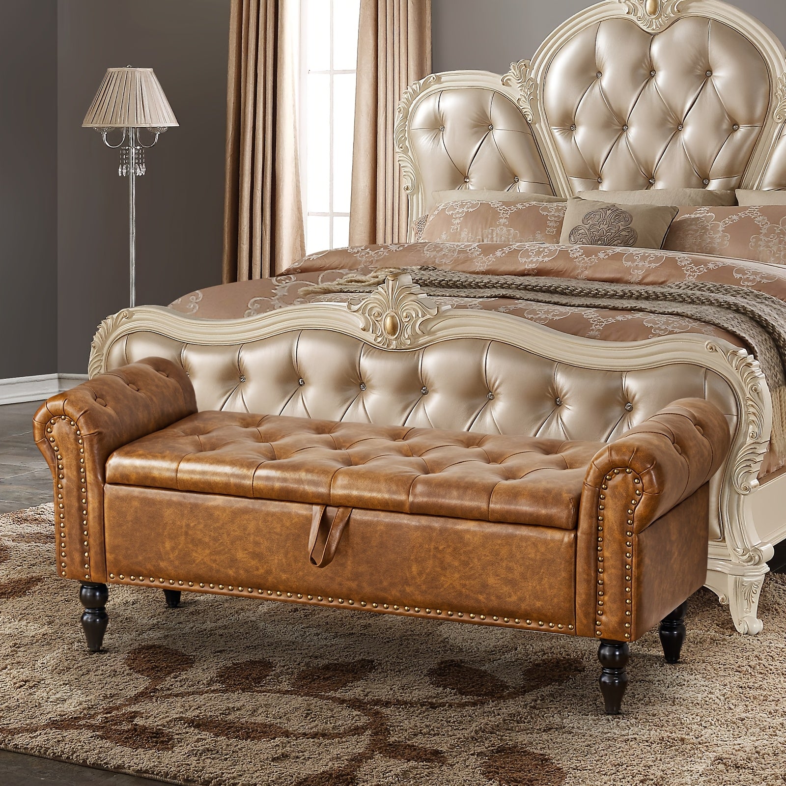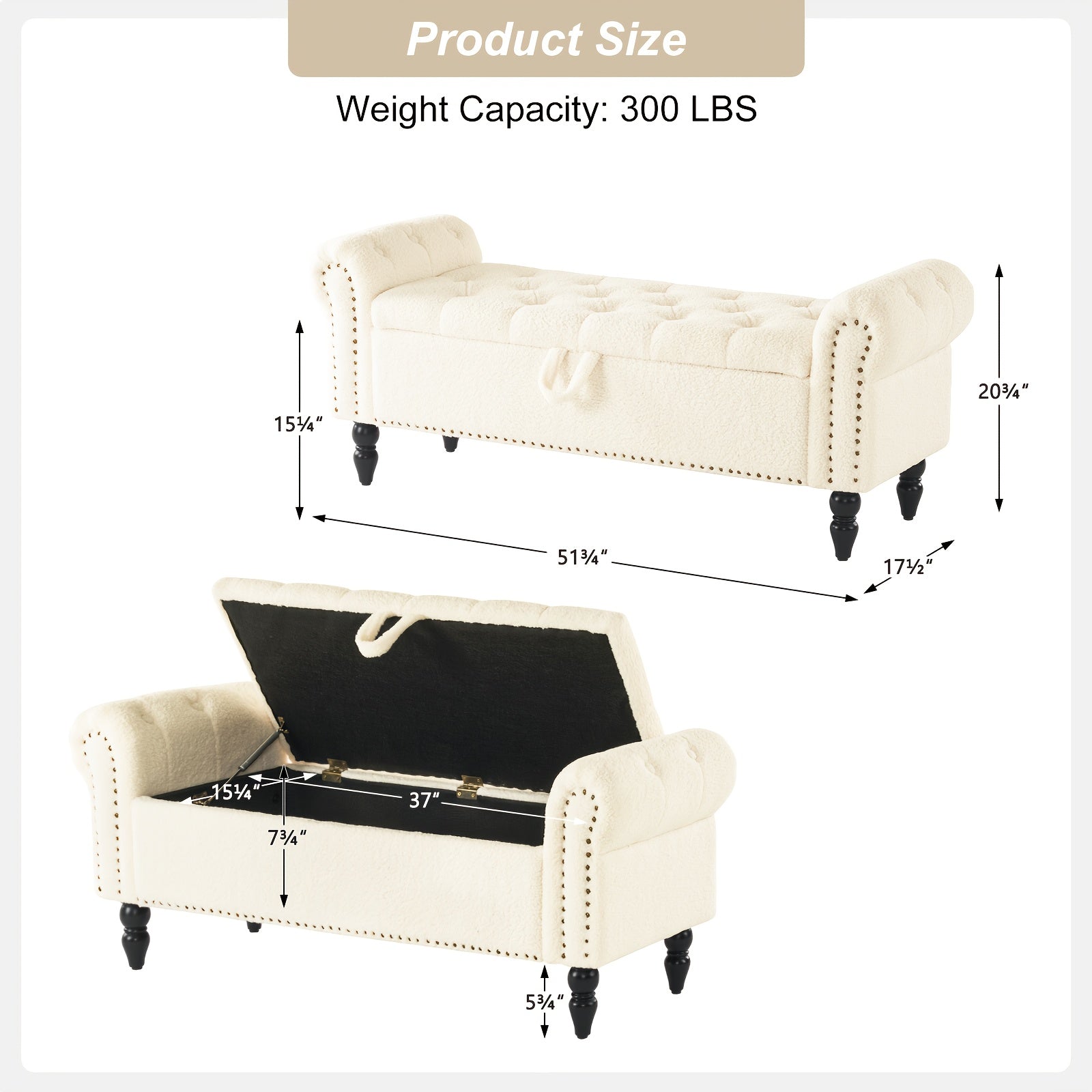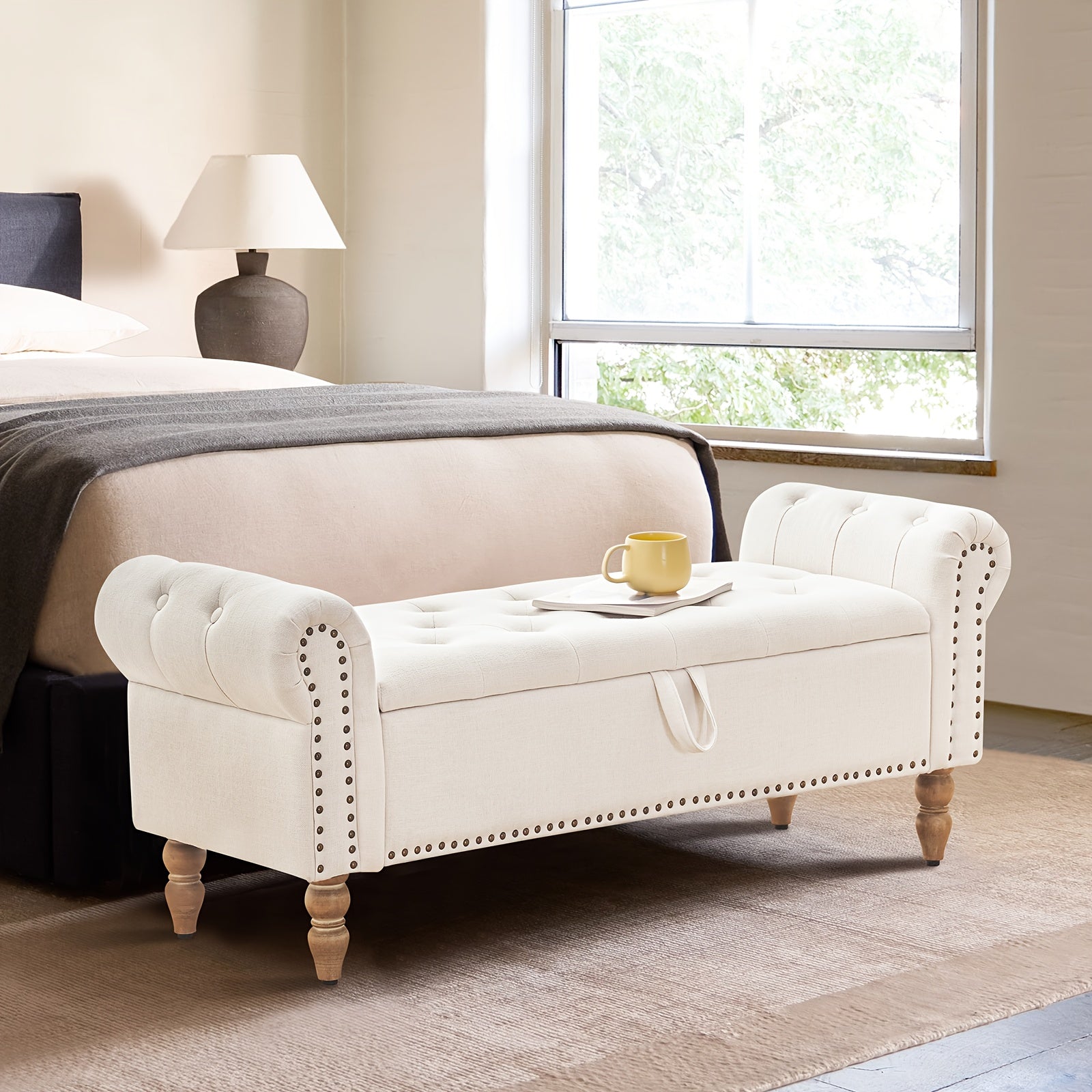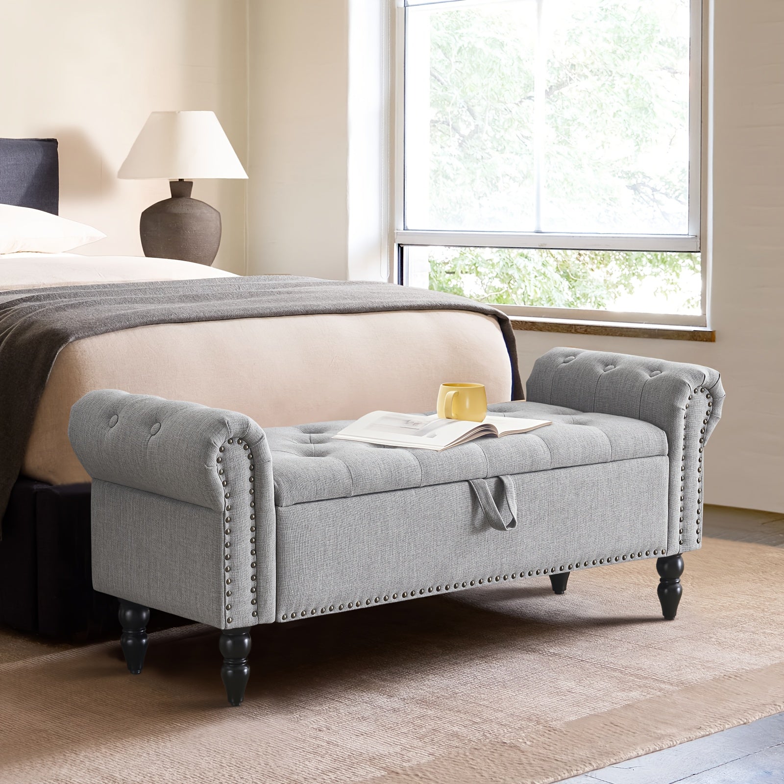 FURNIMART Luxury Mid-Century Modern Wooden Storage Bench with Roll-Up Arms - Large Capacity Flip-Top Design, Durable Recycled Wood, Easy Assembly for Bedroom, Living Room, Hallway