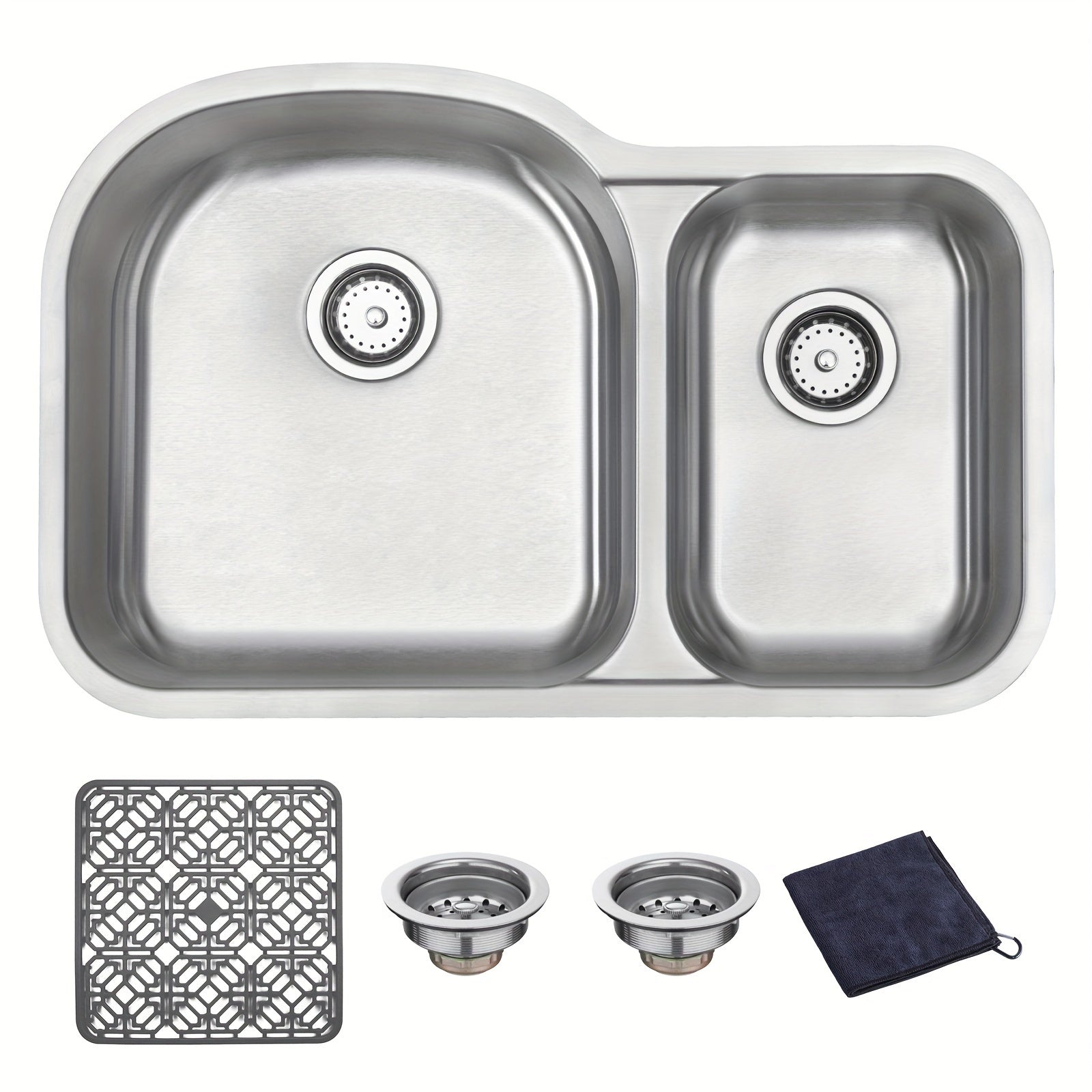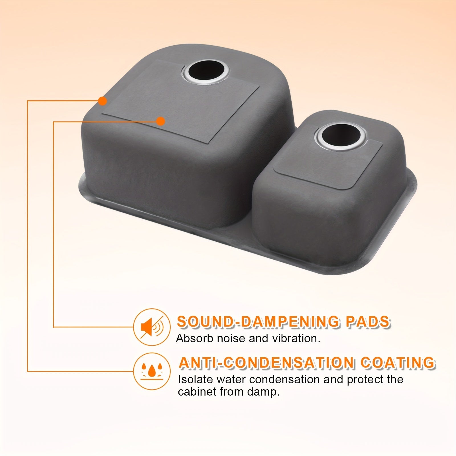 Precision-Crafted, Modern 9" Stainless Steel Undermount Kitchen Sink - Double Bowl, Soundproof Design with Accessories, Rust-Resistant & Easy Drainage, Basin Sink, 18 Gauge, JASSFERRY