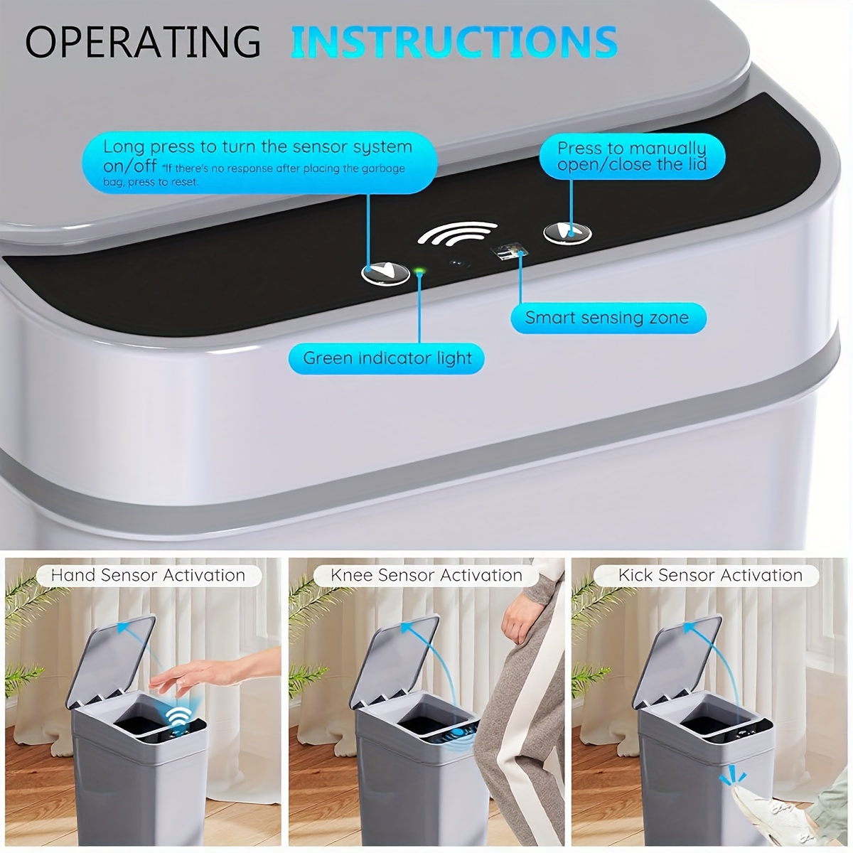 About this itemCompact Design.Its slim shape allows it to fit perfectly in narrow spaces, making it ideal for bathrooms, kitchens, bedrooms, RVs, offices, or any area where space is limited. It offers a storage capacity, ensuring ample space for 17L/4.49gal storing various items.Touchless Trash Can. This touchless trash can offers a convenient and hygienic solution for disposing of waste. With its built-in motion sensor, you can simply wave your hands above the infrared motion