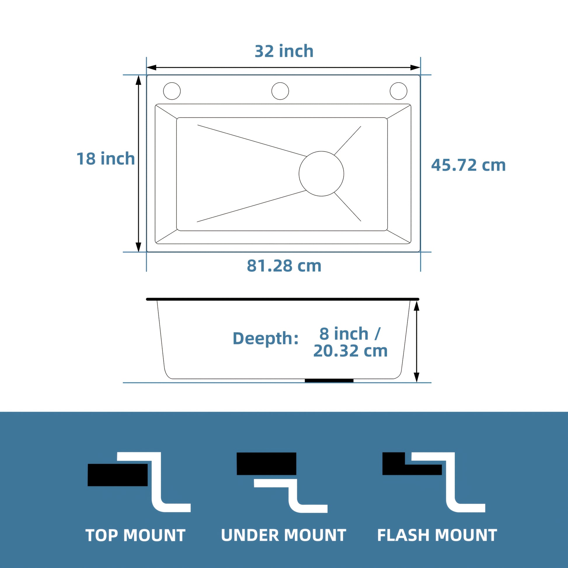 Details about the product and how to use it: - Made of stainless steel - Color: silver - Type of installation: undermount - Sizes available: 28" x 18", 30" x 18", 32" x 18" - Ideal for washing dishes at home.