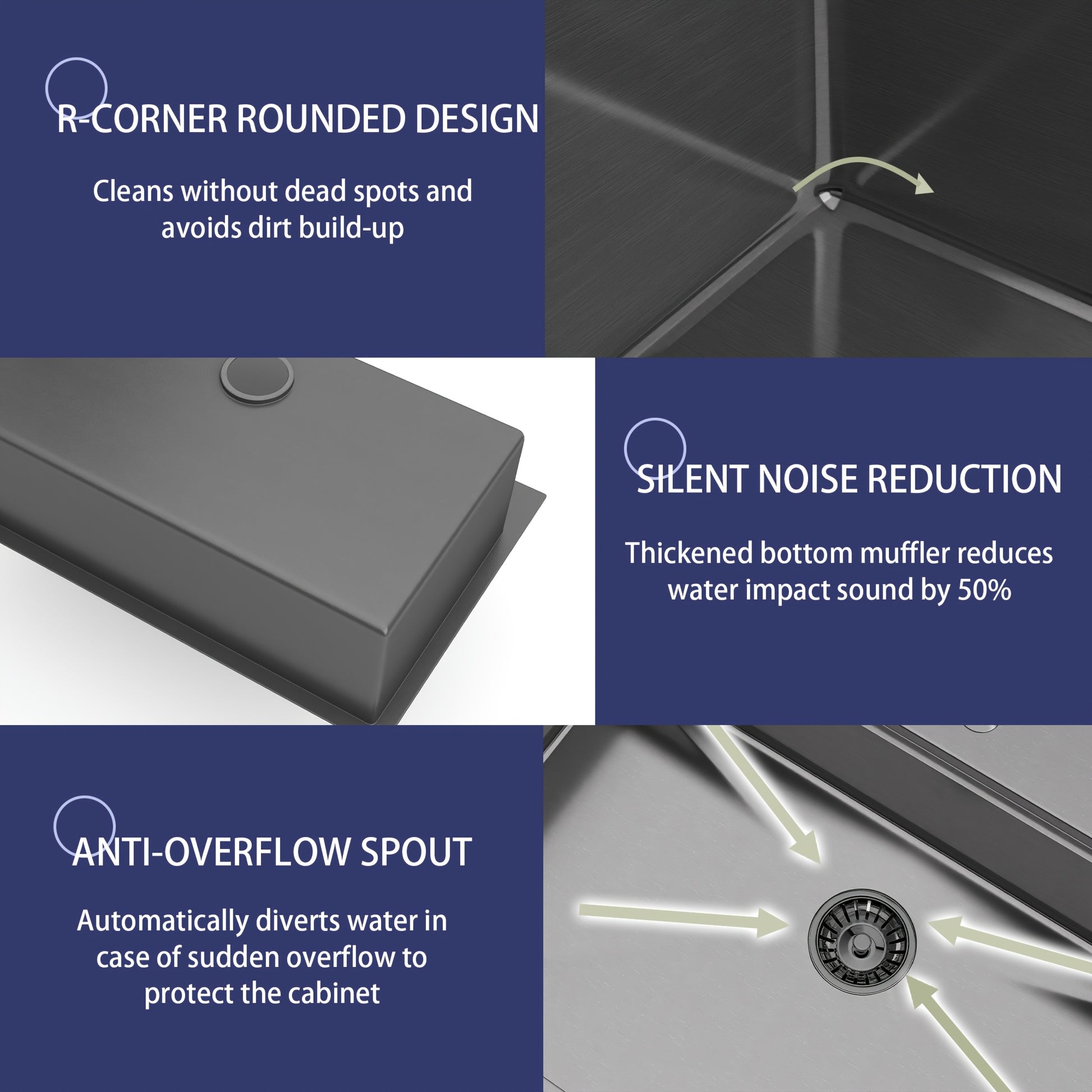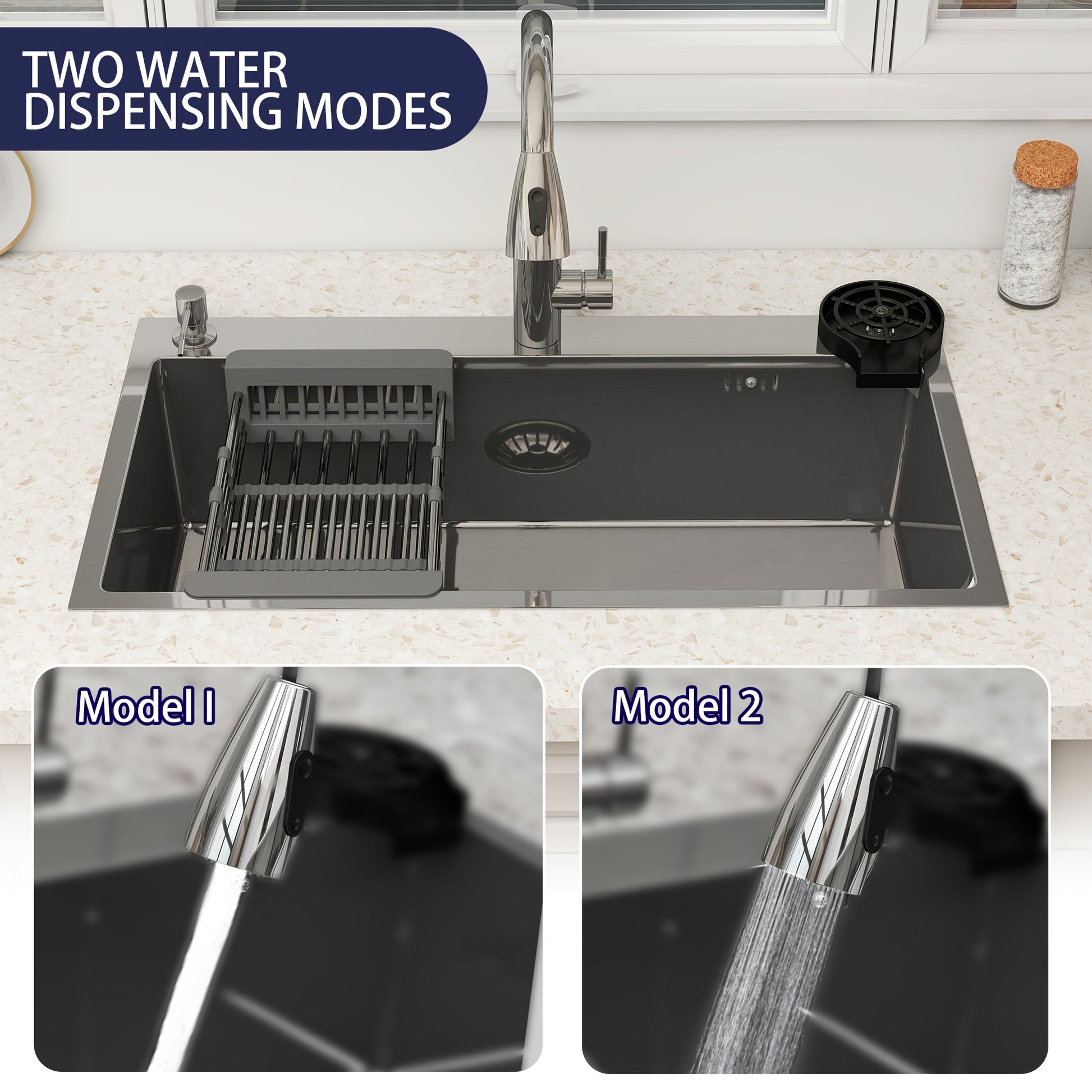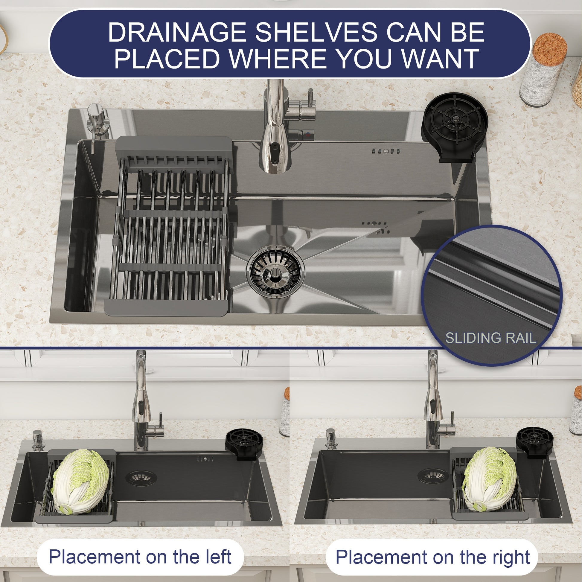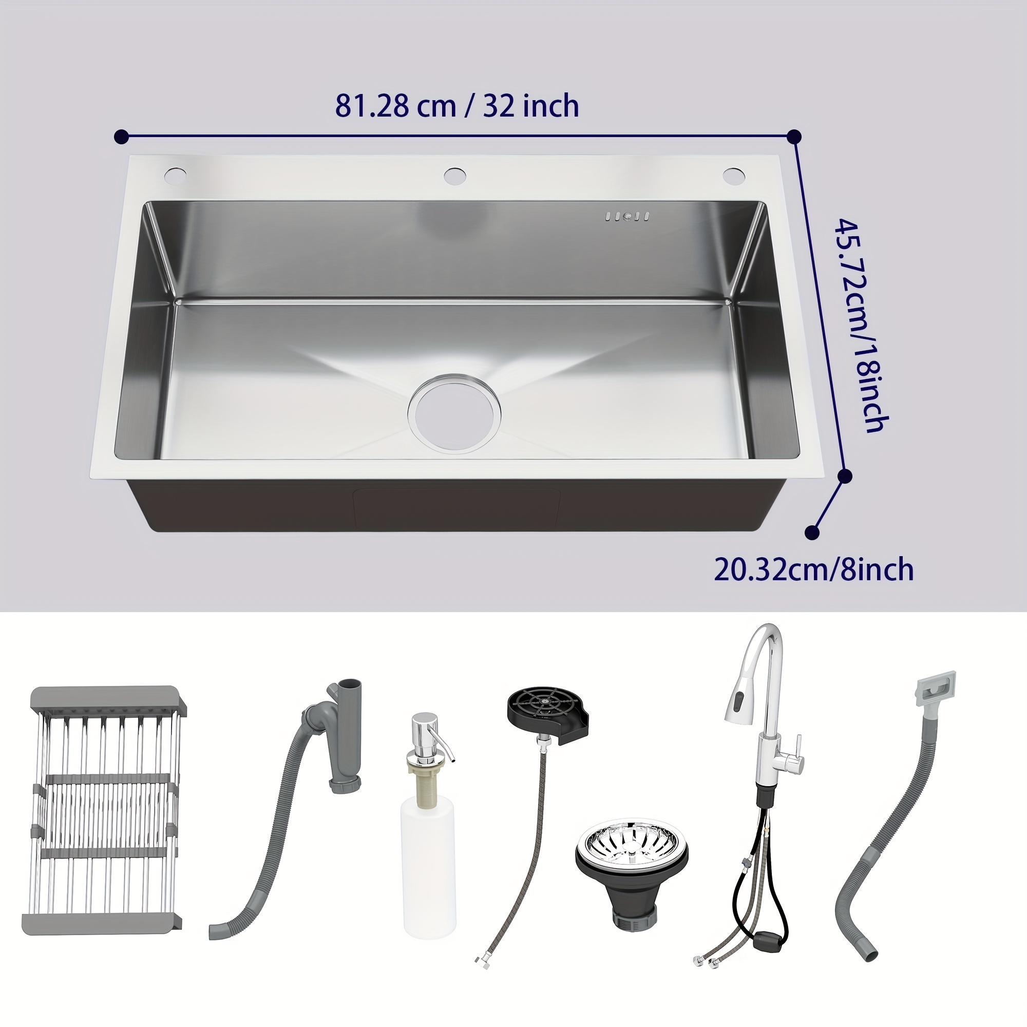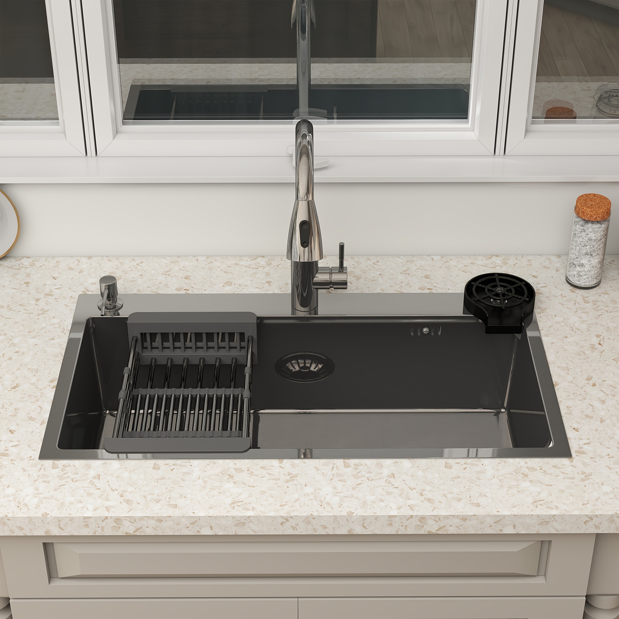 28" 30" 32" Kitchen Sink Stainless Steel Single Bowl Drop In Top Mount Imitation Honeycomb Nano Coating Single Bowl Kitchen Sink With Stainless Steel Drawable Faucet, Telescopic Basket, Soap Dispenser