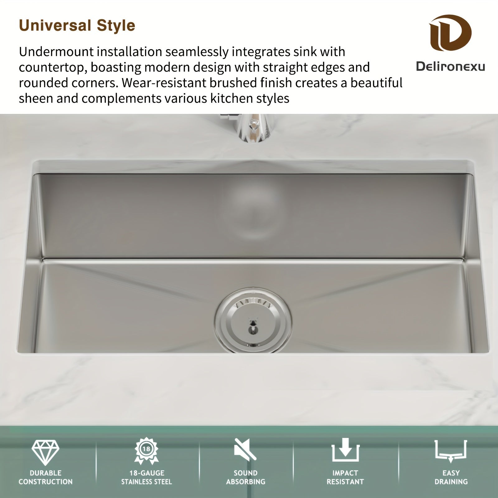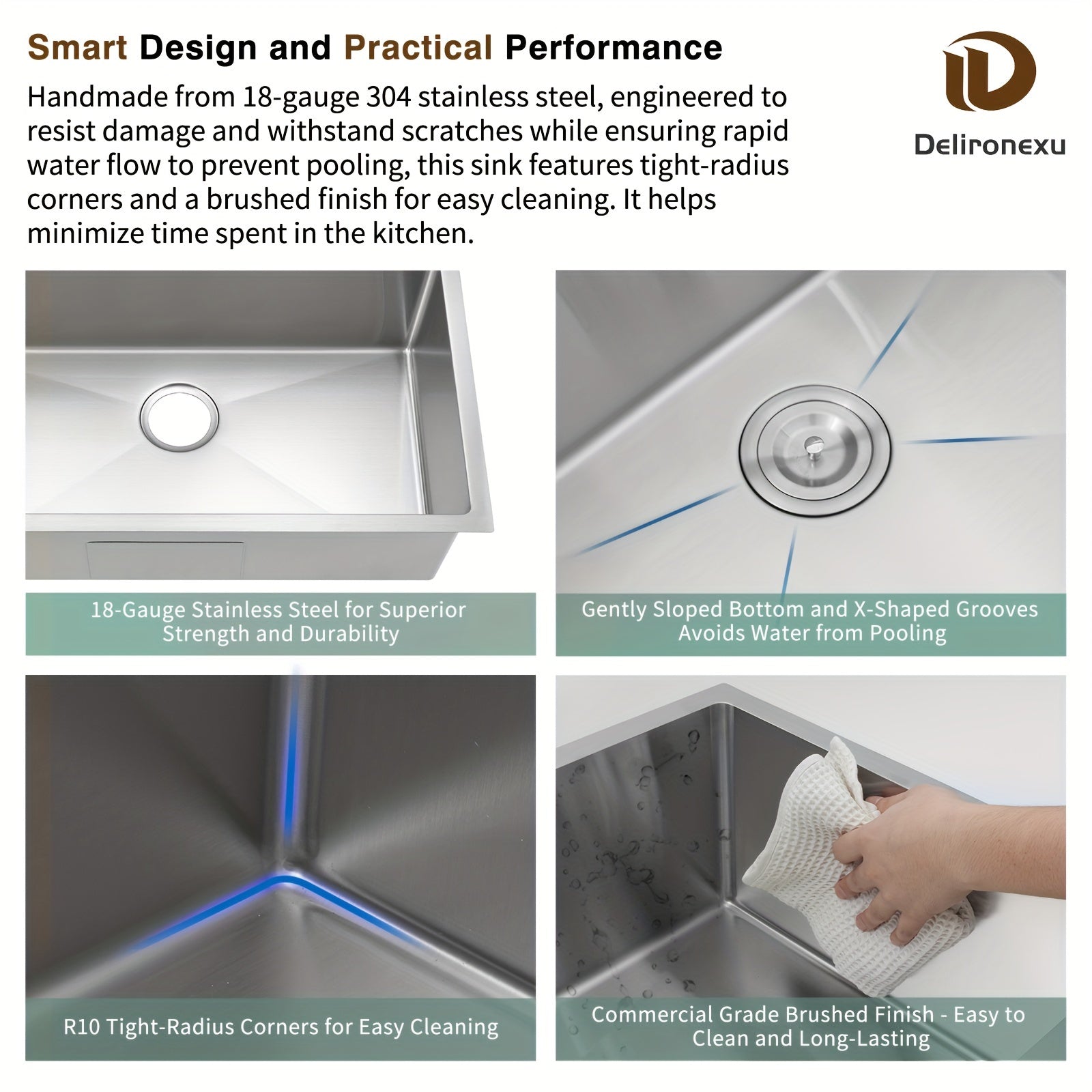 30 Inch Undermount Kitchen Sink - Delironexu 18 Gauge Stainless Steel Handmade Single Bowl Kitchen Sinks With Brushed Finish, Modern Sink, 30"x18"x9", Sink Only