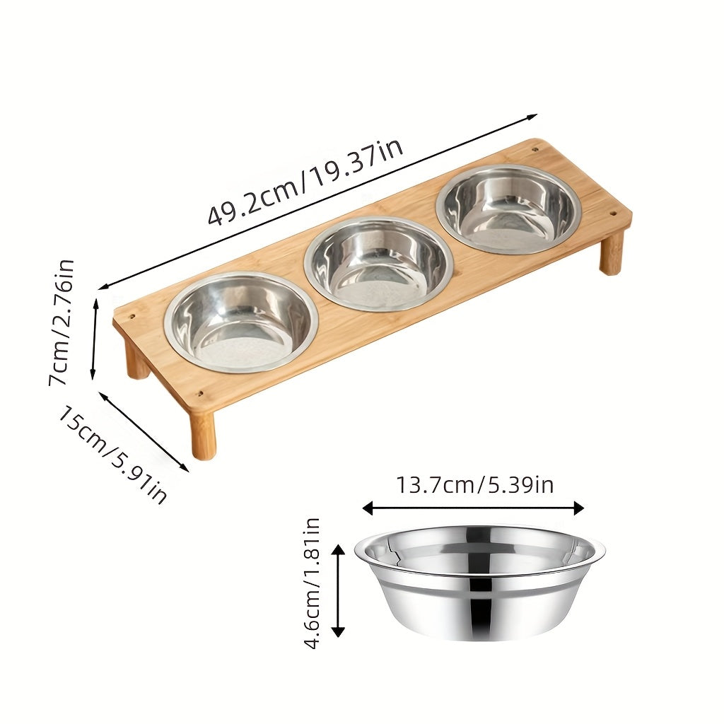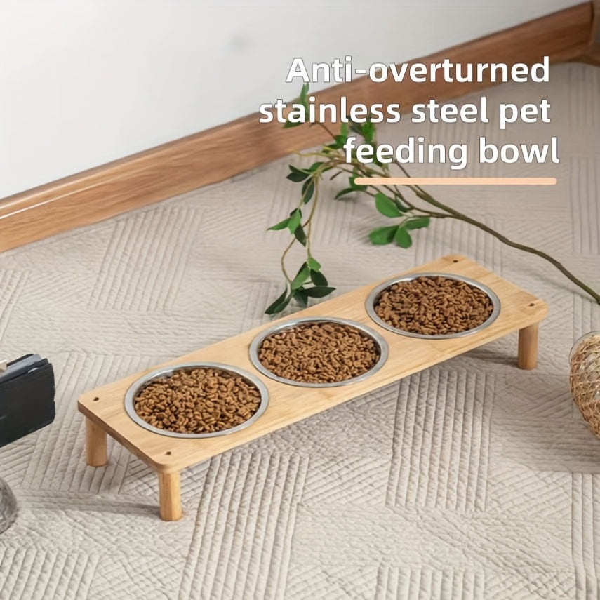 Cat High-Table Bowl, Cat Food Bowl, Cat Food Tray, Cat Food Bowl, Cat Water Bowl, Puppy Bowl, Puppy Food Tray, Puppy Water Bowl, Pet Feeding and Watering Bowl, Two Bowls, Three Bowls Design, Stainless Steel Material, Heighten