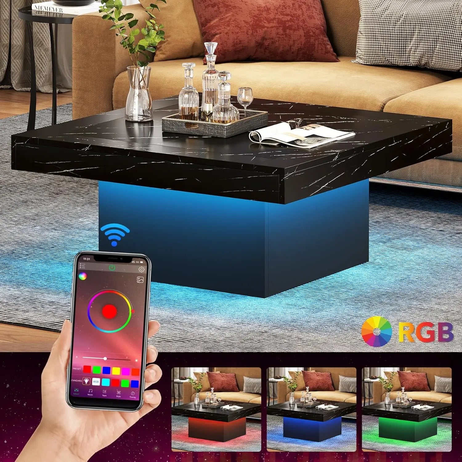 Tribesigns Coffee Table Square LED Coffee Table Engineered Wood Low Coffee Table for Living Room Rustic Brown & Black